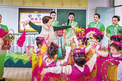 “阿霞老师”带着采茶灯“进课堂”,总能引来孩子们极大的兴趣。