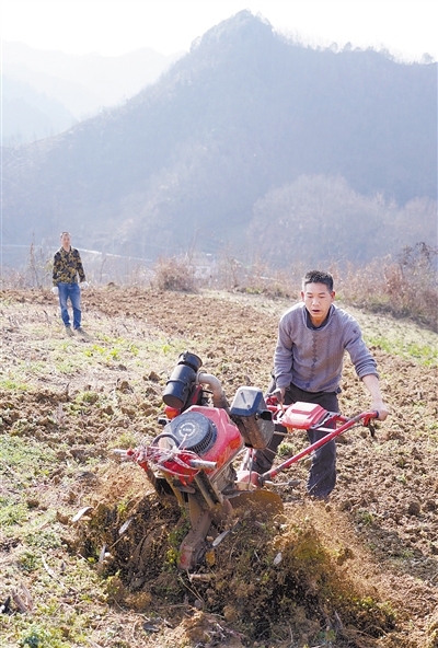 2月24日,汉滨区县河镇毛坝村村民使用旋耕机翻地。眼下,在地处秦巴山区的陕西省安康市汉滨区,农民抢抓农时开展春耕春管,从田间到大棚一派农忙景象。