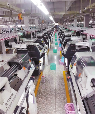 图为竣工项目协龙双贾卡鞋服生产项目生产车间。