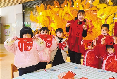 近日,永定区城东幼儿园用“福”趣横生的方式从剪“福”纸、写“福”字、装“福”饰、画“福”画开始,不仅展现了福文化的深厚内涵,在欣赏福文化艺术美的同时,还提高了师幼对“福文化”的参与度,增强了他们对传统民俗文化的认识力。记者 郭亦斌 通讯员 熊川 摄