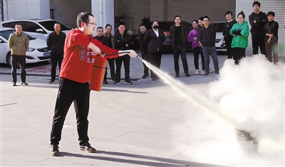 2月28日,市自然资源局通过消防安全基本知识业务培训、观看消防安全案例专题片、组织灭火疏散演练等形式,举办局机关及下属单位消防安全培训和灭火疏散演练,着力提升干部职工消防安全意识。图为灭火器操练现场。 通讯员 吕洪荣 王琴芳 摄