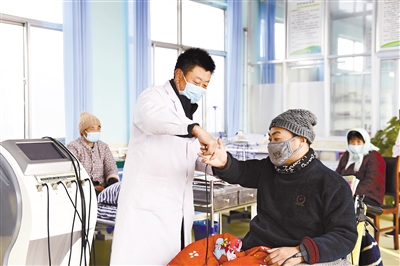 3月1日,在日照市岚山区黄墩镇陈家官庄村助残驿站,工作人员帮助残疾人进行康复训练。山东省日照市岚山区2021年以建设镇域残疾人综合服务平台为主线,以村级养老服务中心为辅线,将居民长期护理保险与残疾人托养政策相结合,建设“如康家园”残疾人之家和助残驿站,开展日间照料、康复治疗、辅助就业等服务,为残疾人带来家一般的温暖。