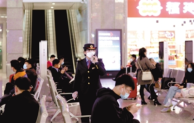 6日下午,龙岩动车站秩序井然,旅客们按照防疫要求戴好口罩,依次完成“三码”联查、体温检测等步骤后在候车室等候,动车站工作人员通过步话机提醒旅客做好防护措施,注意个人安全。