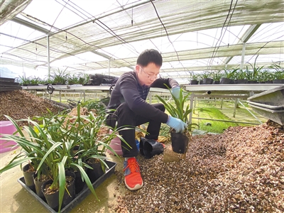 连城县朋口镇兰花资源丰富,拥有春兰、蕙兰、建兰、寒兰等九大类千余个品种,是全国最大的国兰基地和全国重要的兰花集散地,拥有“中国兰花名镇”“中国兰花文化之乡”等称号。近年来,该镇实施“百千亿工程”,兰花种植面积达2000余亩,拥有兰花电商91家,去年销售收入达1.89亿元,其中,电商年销售额突破6600万元。图为2日兰农在移植兰苗。
