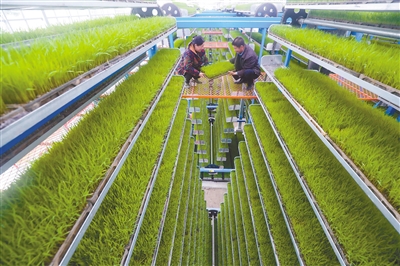 3月17日,河南省信阳市光山县罗陈乡张楼村青龙河合作社社员在全自动智能化工厂育秧基地检查再生水稻秧苗在降温天气下的生长情况。为应对近期降温天气,山东、河北、河南等地的农民积极做好防范措施,确保各项管理工作到位,全力做好春季农业生产。 新华社发 谢万柏 摄