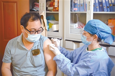 连日来,新罗区雁石镇加强社会面防控,严格落实公共场所扫码、测温、戴口罩等常态化防控措施,持续推进疫苗接种工作。图为18日下午,龙岩人民医院银雁医院为辖区群众接种疫苗,当日累计接种新冠疫苗1487针次。