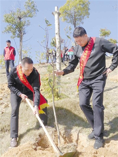 近日,永定区人社局新时代文明实践志愿者前往客家博览园开展义务植树活动。看着自己种下的一颗颗树木充满生机,志愿者们无比高兴,为自己种下了一片爱心、为永定增添了一份新绿而感到自豪。