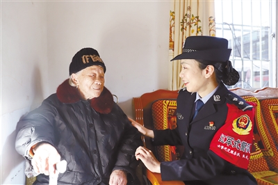 女警巡逻服务队看望九旬老人邹翠英。