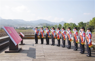 女警巡逻服务队在古田会议会址前重温入党誓词。