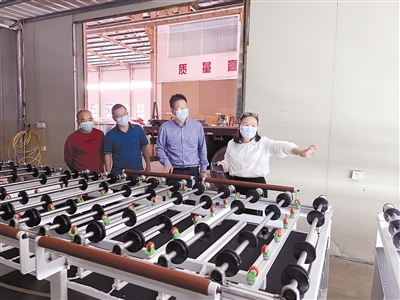 新罗区东城街道以开展“千名干部挂千企帮扶活动”为契机践行亲清政商关系,组建工作专班,加强与企业常态化沟通,打通服务企业“最后一公里”,促企业增产增效、促项目落地。图为,近日,新罗区挂钩干部深入省重点项目福建和达智慧玻璃技术有限公司察看项目进展情况,收集企业遇到的困难问题,推动问题解决。记者 罗姝 通讯员 汤盈盈 摄