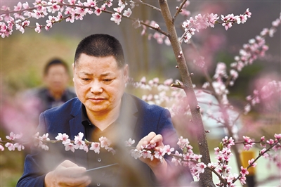 3月26日,镇坪县城关镇白坪村的刘朝阳在蟠桃园查看病虫害情况。刘朝阳长期在外发展,2018年回乡创业成立镇坪县阳塬农业发展有限公司,流转土地发展蟠桃、脆李及生猪产业。近年来,地处巴山腹地的陕西省安康市镇坪县以乡情、亲情为纽带,发展“归雁经济”,在全域旅游、特色产业、社区工厂等重点领域优选投资项目,形成“吸引磁场”和“绿色通道”,推动人才回乡、资金回流、技术回移。截至目前,全县返乡创业者已达718人,创办企业或经济实体698个。“归雁”已成为搞活一片经济、带动一乡发展、造福一方群众的“领头雁”。 新华社记者 陶明 摄