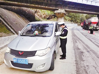 交警大队干警在路上执勤,确保交通安全。