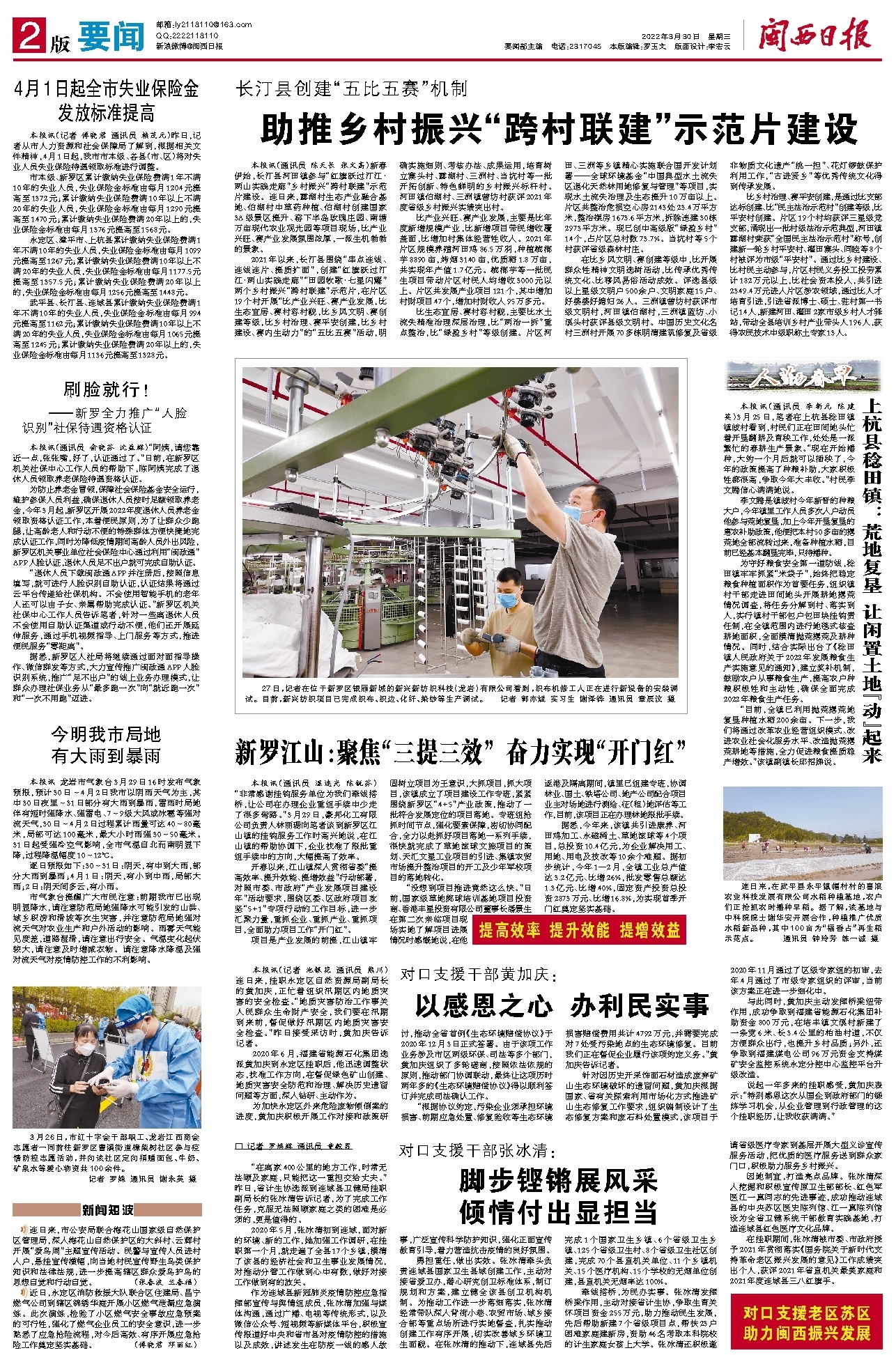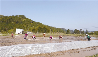 连日来,在武平县永平镇帽村村的喜浪农业科技发展有限公司水稻种植基地,农户们正抢抓农时播种早稻。据了解,该基地与中科院院士谢华安开展合作,种植推广优质水稻新品种,其中100亩为“福香占”再生稻示范点。 通讯员 钟玲芳 练一诚 摄