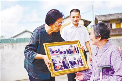 去年,李燕华阿姨带家人到广东省梅州市梅县区桃尧镇桃源村看望93岁高龄的老接头户曾奎秀。 赵芬 摄