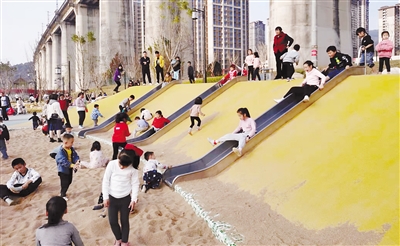 龙岩市东山湿地公园一期CD地块工程项目主体基本完工,并将于近期对市民正式开放。图为东山湿地公园儿童游乐场吸引众多孩子玩耍、游戏。 融媒体记者 傅利昌 摄