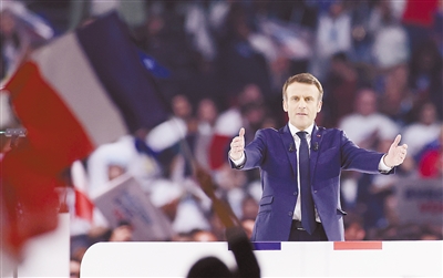 4月2日,法国总统马克龙在巴黎附近的拉德芳斯体育馆出席竞选集会。当日,法国总统马克龙在巴黎举行大型竞选集会。马克龙将参加定于今年4月举行的总统选举,以寻求第二个总统任期。
