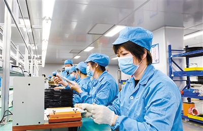 日前,在永定区文秀数字产业园,福建省维骑动力新能源科技公司自动化SMT无尘生产车间内,工人正加紧作业。据悉,该公司自去年11月投产以来,订单接连不断,预计今年产值可超过2亿元。为确保文秀数字产业园建设加快推进,永定区全程提供“保姆式”服务。截至目前,园区共落地产业项目6个,总投资130亿元。该产业园已列入省级成长型数字经济园区名单。