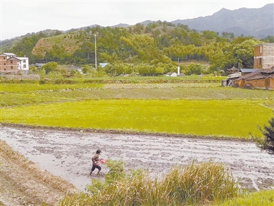 一位农忙中的大嫂蓦然闯入眼帘,她正在不远处熟练地耕田。她使用的是小型拖拉机,双手扶住两个把柄,啪哒啪哒,在水田里有序地来回倒腾。我好奇地走近她,观望着,拍照着。“这个有什么好拍的呀?我又不是漂亮的小姑娘,浑身脏兮兮的!”她边笑边用家乡话对我说道。“自然就好,劳动中的女人最美丽!”我也用家乡话回应,逗得她情不自禁哈哈大笑,清脆的笑声伴着惬意的春风越飘越远,渐渐弥散在青山碧水中。
