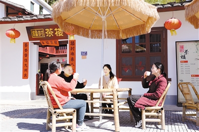 游客在福村茶楼品茶休息。