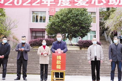 日前,长汀二中举行“爱心传真情·一起向未来”2022年度爱心助学捐款仪式。师生们的一份份捐款,一颗颗爱心,向受助学生们传递着爱的暖流,诠释着长汀二中人扶危济困的无私胸怀,解读着二中人的真善美。据悉,“长汀二中爱心助学基金会”成立以来,每年三月份由学校工会、团委联合发出倡议,号召全校师生参与到助学圆梦的行动中来,助力家庭贫困学生完成学业。今年爱心助学活动捐款总额62100多元,其中学生捐款33800多元,教职员工捐款28300元。 通讯员 黎寿钦 郭志贞 摄