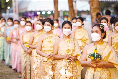 4月13日,在泰国大城府,演员参加街头巡游活动庆祝宋干节。每年4月13日至15日是泰国传统新年宋干节,人们会以互相泼水的方式表达迎新祝福。受新冠疫情影响,泰国已连续第三年取消街头泼水庆祝活动,泰国旅游局在大城府改为举办街头巡游活动庆祝宋干节。 新华社记者 王腾 摄