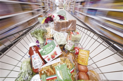 这是4月13日在英国曼彻斯特一家超市内拍摄的购物车。英国3月通货膨胀率达7%,为30年来最高水平,能源、食品价格高涨进一步推升英国家庭生活成本。英国国家统计局13日发布的数据显示,英国3月消费者价格指数(CPI)比一年前上涨7%,为1992年3月以来最高纪录。2月的数据是6.2%。 新华社 发
