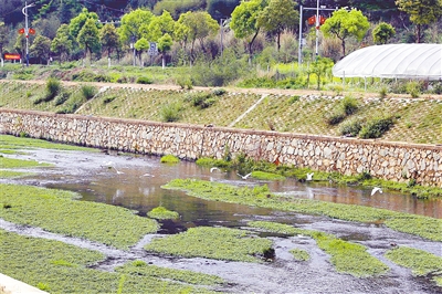 连城县新泉镇投资2561万元实施了庙前溪官庄段治理工程,工程建设内容主要包括堤防(护岸)工程、河道清淤工程等,综合治理长度为5.15千米,新建防洪堤3.32千米。工程去年建成以来,不仅提升了当地的防洪防汛能力,而且改善了生态环境,引来了大批白鹭等野生鸟类前来落户。图为日前庙前溪官庄段白鹭在河中觅食。