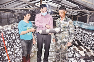 农艺师正热心指导范禄洪增强香菇菌棒出蕾率。