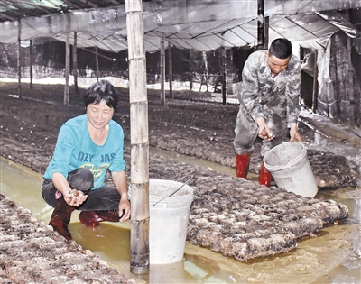 范禄洪夫妻在采摘鲜菇,准备次日清早送市场售卖。
