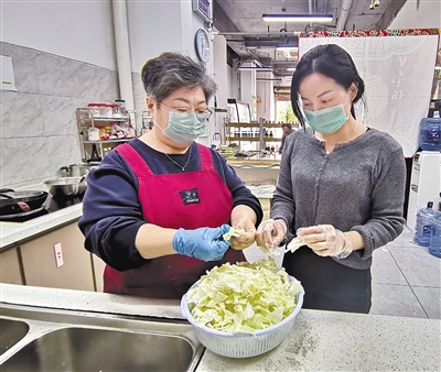 钟德传的妻子牛慧敏(图左)不仅推销丈夫种植的产品,而且还在专卖店尝试性厨房里制作生态健康的美食。