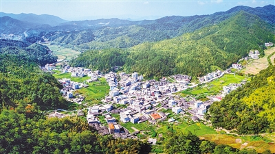 满目青翠的上杭县南阳镇涂坑民族村。