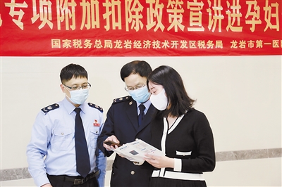 为精准宣传3岁以下婴幼儿照护个人所得税专项附加扣除政策,4月18日,国家税务总局龙岩经济技术开发区税务局联合龙岩市第一医院在该院“孕妇学校”中增设个人所得税专项附加扣除申报教学课程,现场为大家答疑解惑。图为活动现场。 融媒体记者 曾俊钦 通讯员 梁键 摄