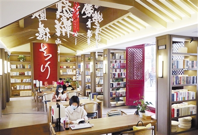 4月18日,读者在眉山知行·阅读坊湿地公园人文书店阅读。位于四川眉山东坡城市湿地公园一期南门入口处的知行·阅读坊湿地公园人文书店于2021年建成投入使用,整体为仿古建筑风格,内有阅读区、购书区、休息区,是眉山市首家湿地公园特色人文书店。 新华社发