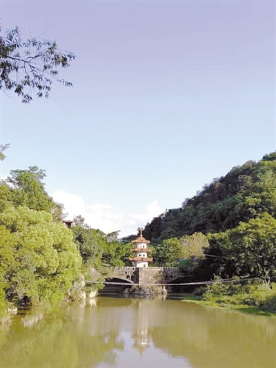 图为龙门塔雄姿。