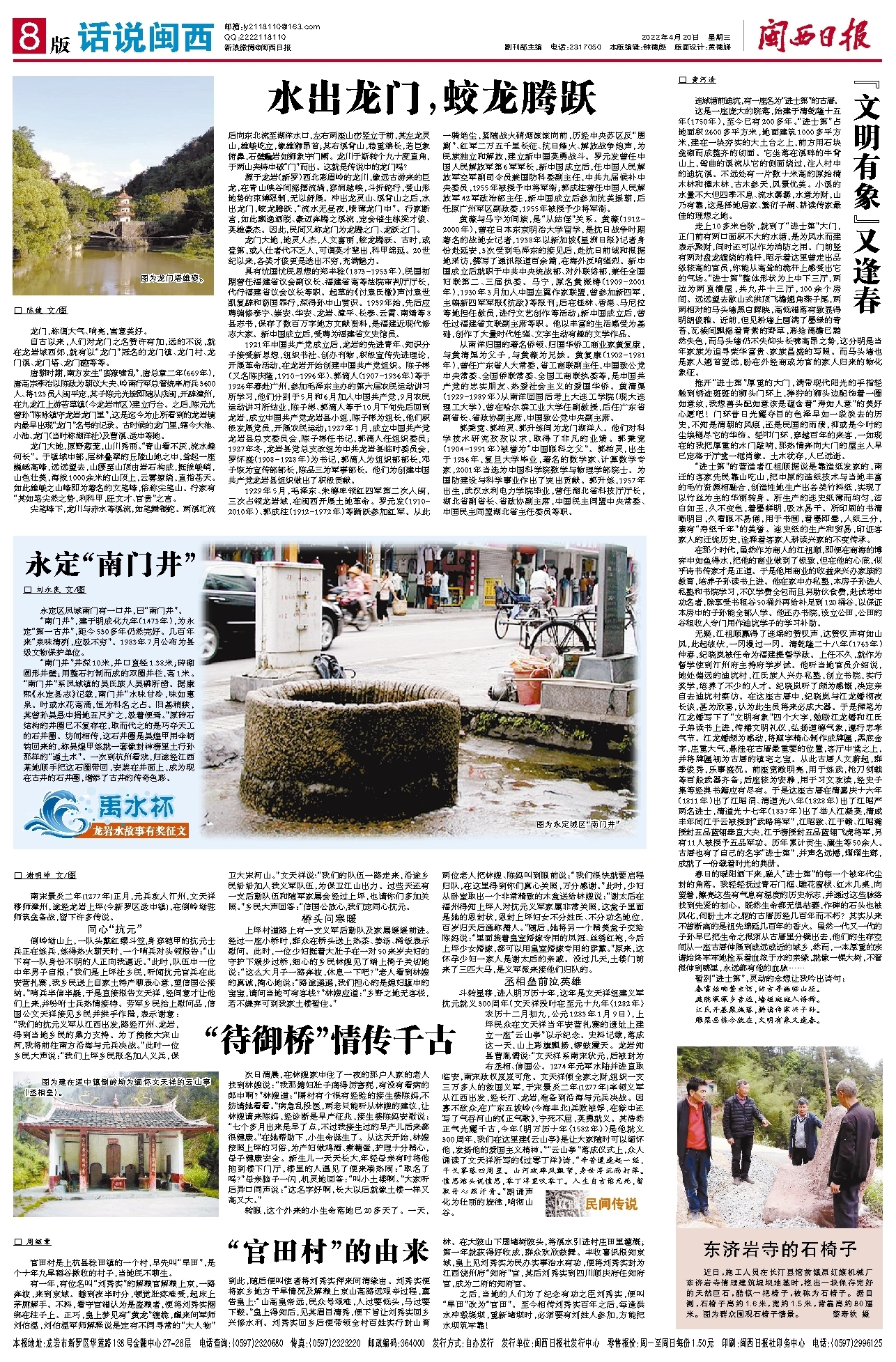 自古以来,人们对龙门之名赞许有加,远的不说,就在龙岩城西郊,就有以“龙门”冠名的龙门镇、龙门村、龙门溪、龙门塔、龙门硿等等。