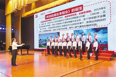 “每一首经典歌曲,都是一段难忘的记忆,也是一个时代的印记。音乐党课分新民主主义革命时期、社会主义革命和建设时期、改革开放和社会主义现代化建设新时期、中国特色社会主义进入新时代这四个阶段的历史脉络,从各个时期浩如烟海的红色经典歌曲中选取沧海一粟,采取讲、唱、演的形式,引领我们不忘初心、牢记使命、永远奋斗!”武平县政协主席王云川介绍,并在台上引吭高歌。