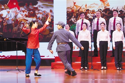 从石库门到天安门,从兴业路到复兴路,从《国际歌》到《义勇军进行曲》,从《春天的故事》到《走进新时代》,从《共筑中国梦》到《我们都是追梦人》,清唱、伴唱、合唱,钢琴、管弦、架子鼓,一支支或舒缓或激越或咏赞的美妙旋律在古田上空飘荡,一个个美丽的音符和着梁野歌友的精彩表演在场内腾跃迸发,情景交融,心花灼灼,带领全体委员穿越时空,更加深刻领会“两个确立”的决定性意义,更加坚定做到“两个维护”的政治自觉、思想自觉、行动自觉。