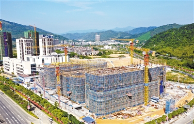 3日,未来城新罗区中医院项目现场热火朝天,工人正在搭楼板、浇灌水泥。项目定位为二级综合性医院,拟置床位300张,设有急诊科、妇产科、儿科、皮肤科、眼科、耳鼻喉科、口腔科、中医科等。医院规划总用地面积约3.1万平方米,总建筑面积约4.9万平方米,总投资约4亿元,分两期建设。