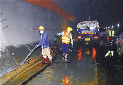 双髻山隧道全长约7600米,最大埋深约334米,是龙龙铁路最长隧道,截至目前,总共开挖完成5.2公里,还剩余2.4公里,有望在年底全面贯通。图为日前隧道内工人在养护作业。 融媒体记者 傅长盛 通讯员 李小勇 摄