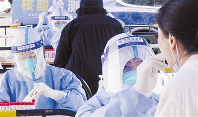 5月9日,朝阳区青年路八里庄街道的居民参加核酸检测筛查。 近期,北京市朝阳区进一步提级管控措施,严格落实居家办公,区域内与民生保障无关的企业全部暂停。朝阳区居民积极参与核酸检测筛查,非必要不外出,齐心协力抗击疫情。 新华社记者 李欣 摄