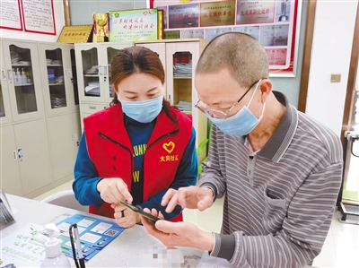 连日来,新罗区南城街道大同社区采取加强宣传、专业指导和上门服务等多种措施,积极开展退休人员养老金资格认证工作,让老年人切实感受到社区的用心关爱服务。图为工作人员正在指导老年人进行认证。