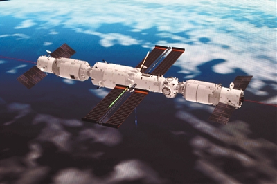 这是在北京航天飞行控制中心拍摄的天舟四号货运飞船与空间站组合体完成自主快速交会对接示意图(5月10日摄)。据中国载人航天工程办公室消息,天舟四号货运飞船入轨后顺利完成状态设置,于北京时间2022年5月10日8时54分,采用自主快速交会对接模式,成功对接空间站天和核心舱后向端口。 新华社记者 郭中正 摄
