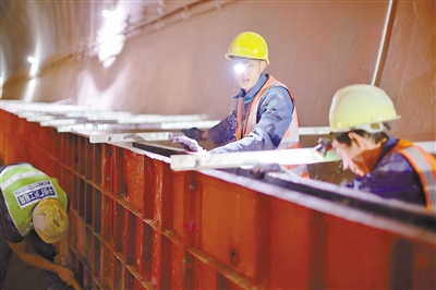 5月16日,工作人员在贵南高铁桐子园一号隧道内施工。当天,在位于贵州省贵定县境内的贵南高铁建设施工现场,中铁广州局建设者们正加紧施工,为贵南高铁早日建成通车而努力。贵南高铁是我国“八纵八横”高速铁路主通道包头至海口通道的重要组成部分,设计时速350公里。 新华社记者 刘续 摄