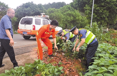 5月11日,上杭公路中心联合县交通综合执法大队对国道205线开展路域环境专项整治行动,重点对占道经营、乱堆乱放以及占用公路绿化用地种植农作物等行为进行集中清理,切实提升国道205线路容路貌水平。图为整治一角。