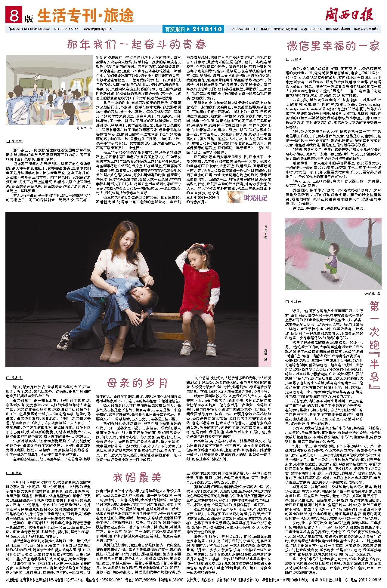 从此,我一发不可收拾,跑“半马”上瘾,渐跑渐远。三年多时间陆陆续续跑了7个“半马”,每次个人的成绩都在进步中。正当我准备冲击全马赛事时,疫情之下,马拉松赛事纷纷停办,也让我对跑步重新审视:难道我们的跑步就是为了参赛?这时,我又翻看起《当我谈跑步时我谈些什么》这本书。村上春树说:“跑步是我日常生活的一个支柱,只要跑步,我便感到快乐。”这让我深受启发:乐享跑步,才是初心。由此,我不再执著于参赛,跑多跑少,跑快跑慢都不计较,怎么开心怎么跑。