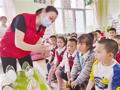 5月18日上午,新罗区中城街道双路亭社区、新时代文明实践站志愿者、巾帼志愿者联合理想城堡幼儿园开展禁毒知识宣传进校园活动。活动现场还开展了食品安全、垃圾分类、保护母亲河、“中华民族一家亲”等法规政策宣传。