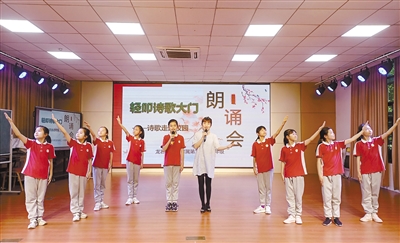 近日,龙岩市师范附属第二小学举办了“读书节”活动,邀请诗人邱德昌、游阶章、余小明到场,三位诗人与学生共度一段美妙的诗歌之旅。此次诗歌朗诵会,使学生感受到了诗歌的魅力,激发了学生继承发扬诗歌文化的热情。图为朗诵会场景。 融媒体记者 郭亦斌 摄