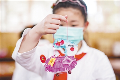 5月27日,在南京市秦淮区武定新村小学,一名学生展示“兔子灯”。近年来,江苏省南京市秦淮区武定新村小学围绕非遗项目“秦淮灯彩”开展一系列教育实践活动,构建丰富多元的秦淮灯彩课程,实现非遗文化保护与文化教育相结合,帮助学生熟悉非遗文化,感受非遗魅力。