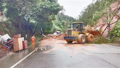 受强降雨影响,上杭县多处路段发生水毁溜方、山体滑坡、树木倾倒等险情,上杭公路中心及时启动防汛应急抢险预案,第一时间组织养路人员和机械设备抢通受阻公路,确保过往司机和当地群众出行安全。截至5月27日上午,已处理险情40余处,清理溜方7000余立方米。 通讯员 郑鹏 摄