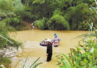 5月26日,漳平市双洋镇境内迎来极端强降雨天气,10千伏双金线48号杆附近出现山体滑坡,线路被迫紧急停运。短时强降雨将唯一一条车辆可以通行的石板桥淹没,为尽快抢修线路,抢修人员“跋山涉水”,每人扛着超10公斤重的物资,用脚踏出一条通畅路,及时恢复供电。 通讯员 陈惠 俞婷婷 摄